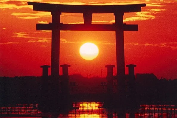 Here, a single red torii gate stands in the sea, marking the sacred space associated with Benzaiten, a deity linked to water, music, and good fortune.